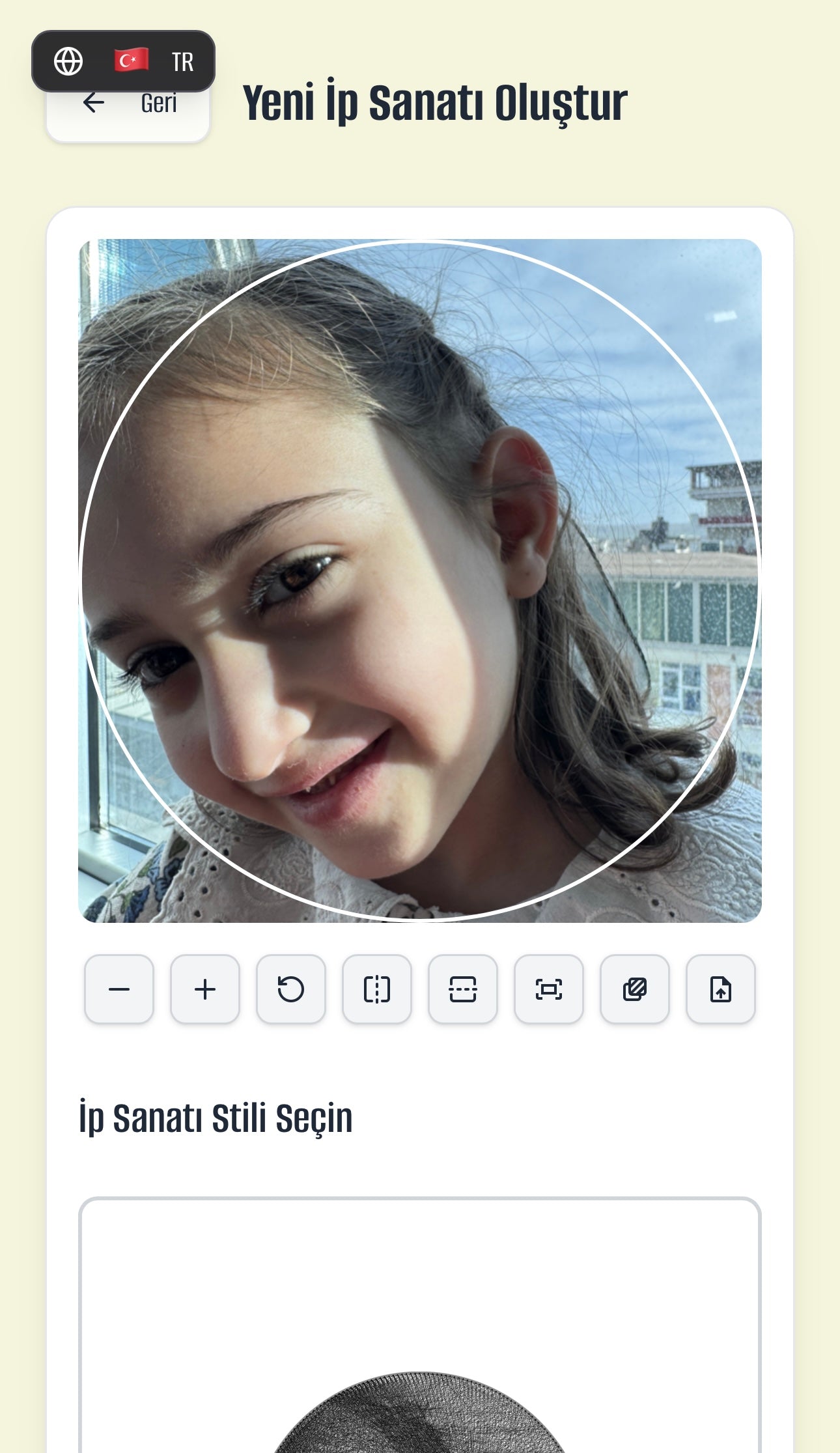 Sipariş verdikten sonra size gönderilen aktivasyon koduyla uygulamaya giriyorsunuz, fotoğrafınızı yüklüyorsunuz ve sistem otomatik olarak tablo tasarımını oluşturuyor. Kutudan çıkan materyallerle adım adım uygulayabiliyorsunuz.